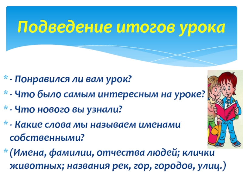 Подведение итогов урока