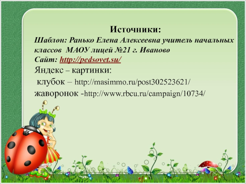 Шаблон: Ранько Елена Алексеевна учитель начальных классов МАОУ лицей №21 г.