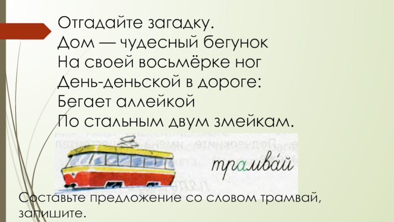 Составьте предложение со словом трамвай, запишите.