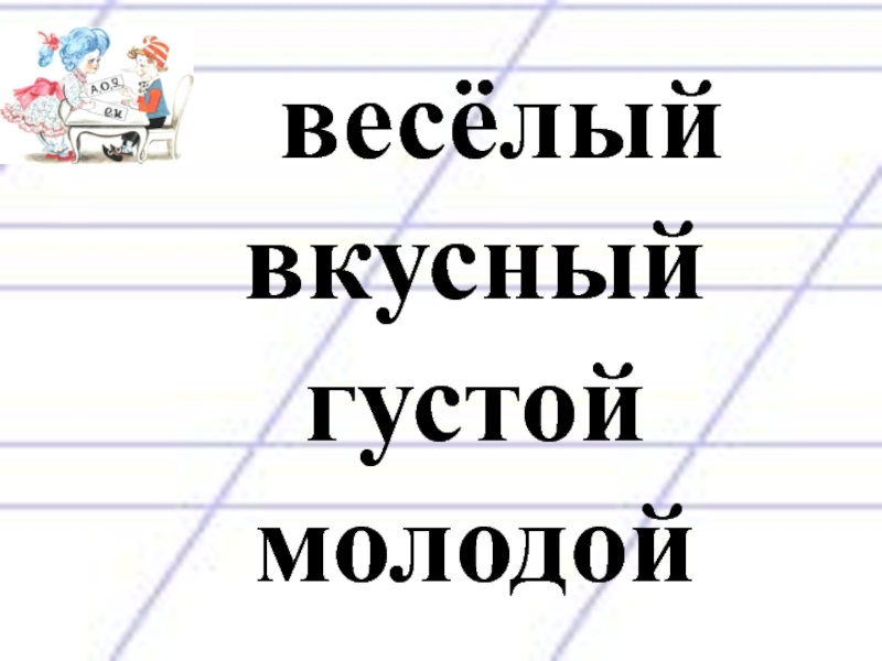 Слайд 9 весёлый вкусный густой молодой