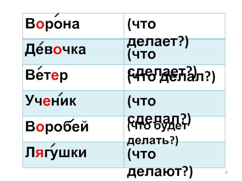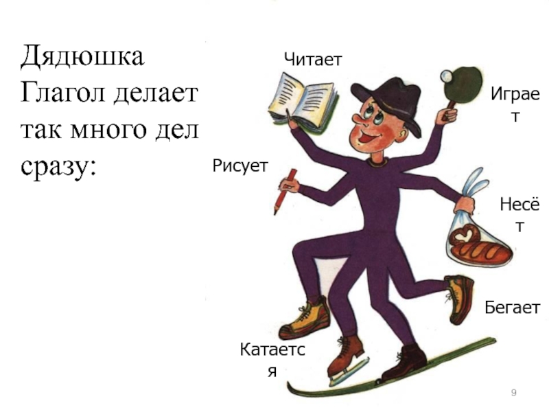 Кот – бегать, мяукать, охотиться.