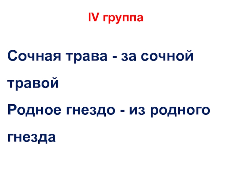 IV группаСочная трава - за сочной травойРодное гнездо - из родного гнезда