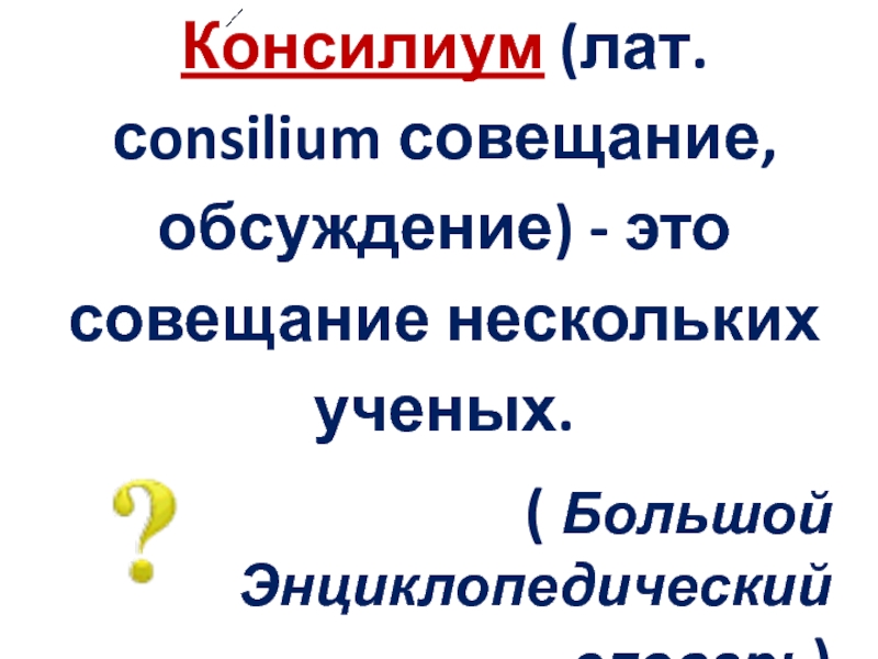 Слайд 8Консилиум (лат. сonsilium совещание, обсуждение) - это совещание нескольких ученых.