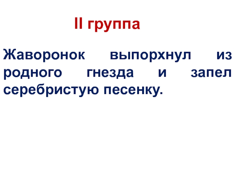 Жаворонок выпорхнул из родного гнезда и запел серебристую песенку. II группа