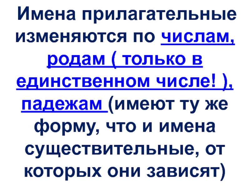 Имена прилагательные изменяются по числам, родам ( только в единственном числе! ), падежам (имеют ту же