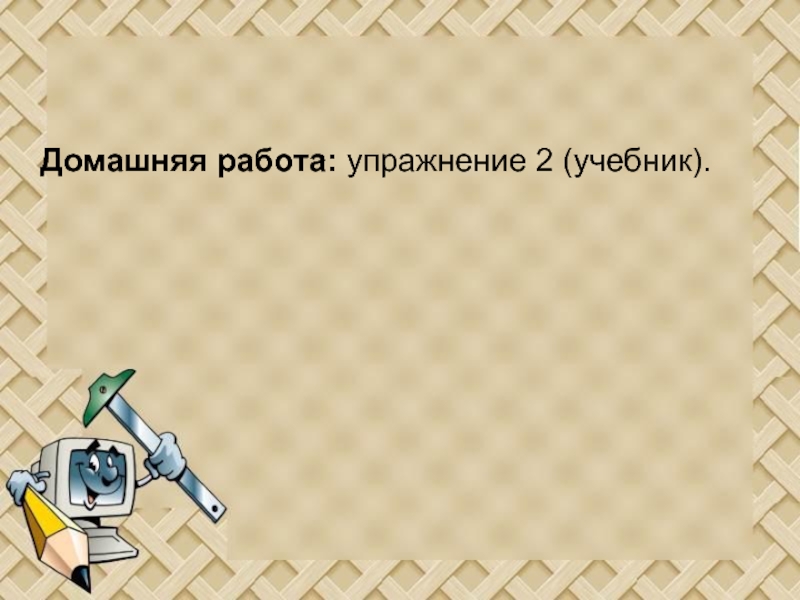 Слайд 12Домашняя работа: упражнение 2 (учебник).