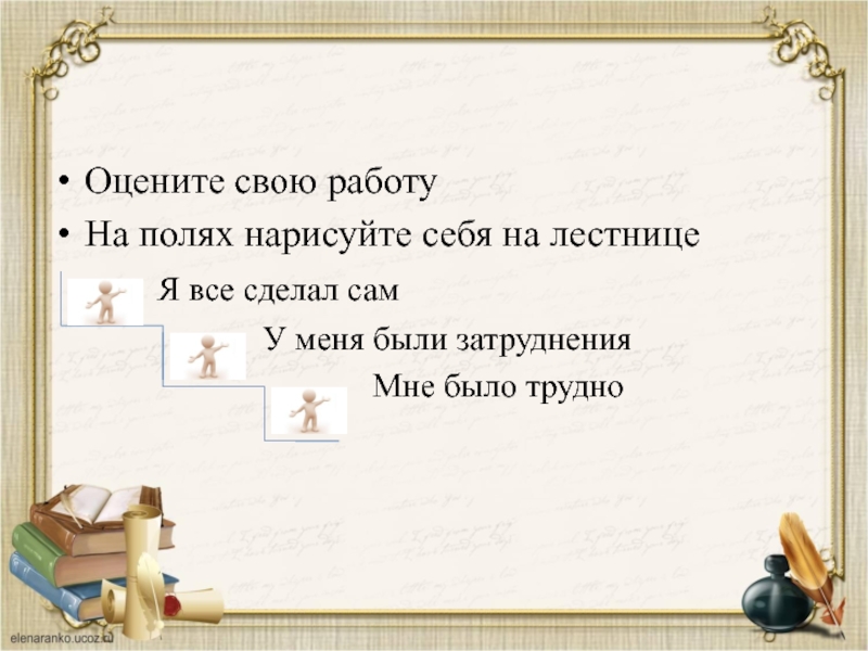 Оцените свою работуНа полях нарисуйте себя на лестнице      Я все сделал сам