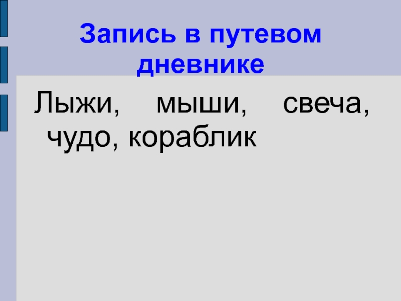 Запись в путевом дневникеЛыжи, мыши, свеча, чудо, кораблик