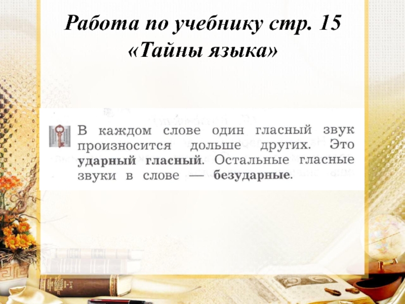 Слайд 11Работа по учебнику стр. 15 «Тайны языка»