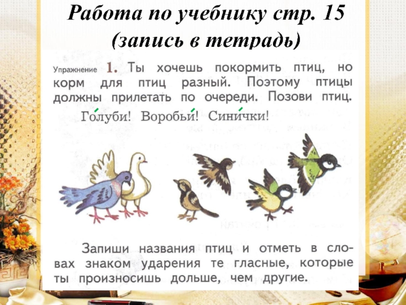 Слайд 10Работа по учебнику стр. 15 (запись в тетрадь)