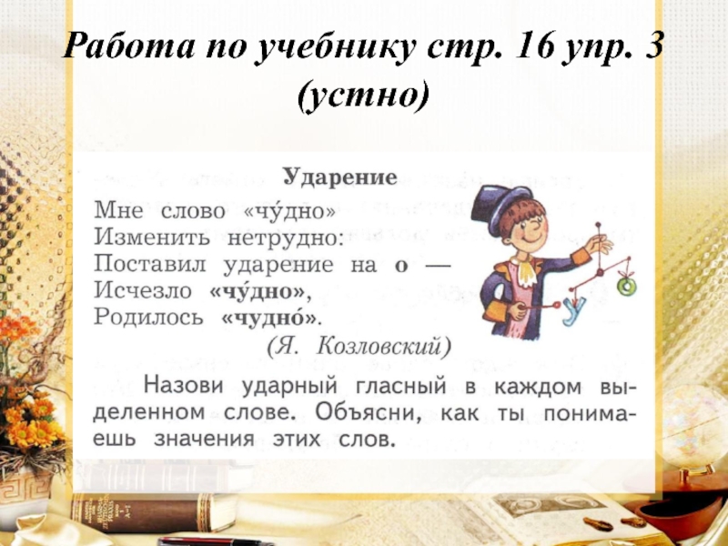 Слайд 14Работа по учебнику стр. 16 упр. 3 (устно)