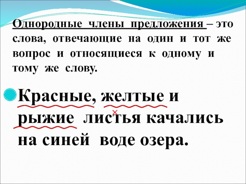 Красные, желтые и рыжие листья качались на синей воде озера.