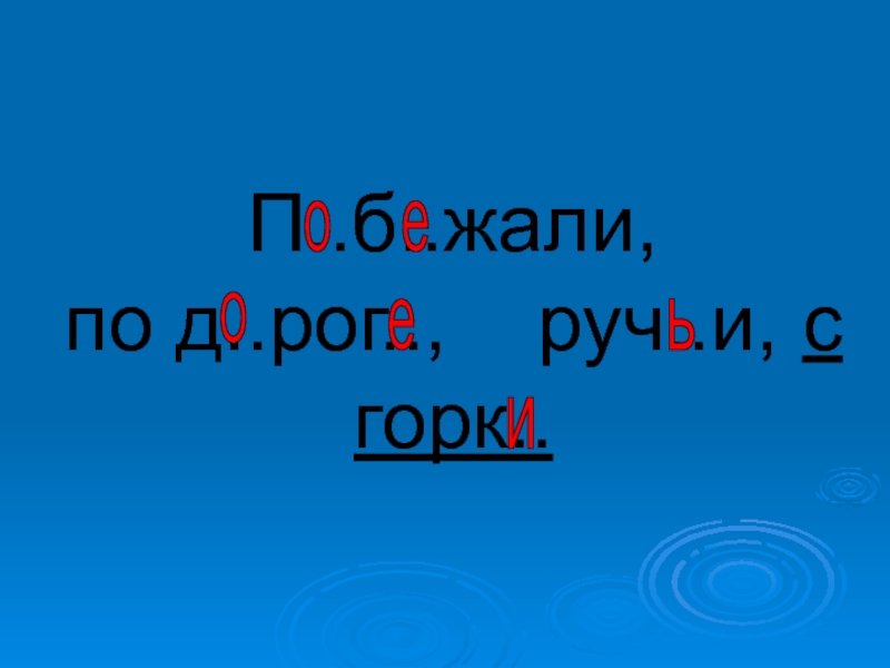 Слайд 16П..б..жали, по д..рог.., руч..и, с горк..