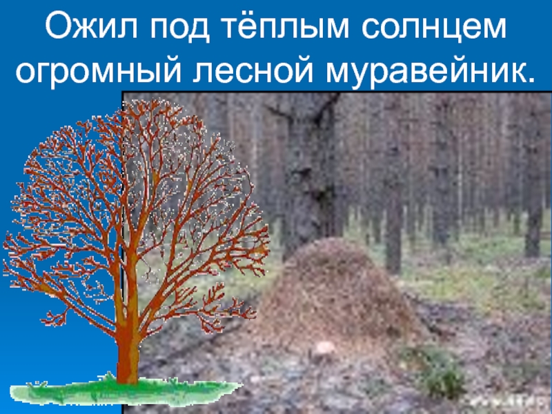 Слайд 23Ожил под тёплым солнцем огромный лесной муравейник.