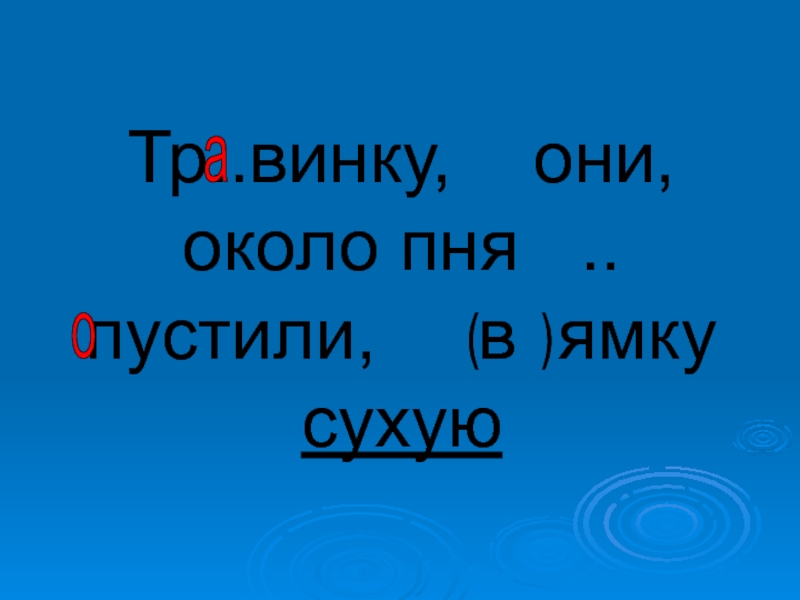 Слайд 28Тр..винку, они, около пня ..пустили, в ямку