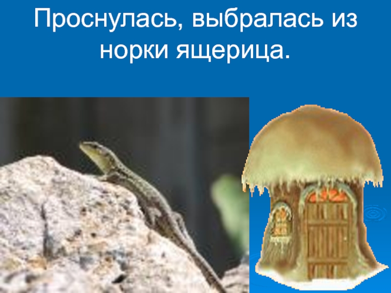Слайд 19Проснулась, выбралась из норки ящерица.