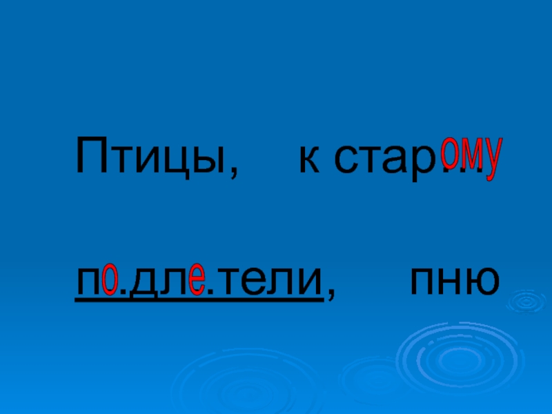 Слайд 26Птицы, к стар… п..дл..тели, пню