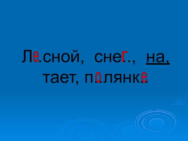 Слайд 14Л..сной, сне.., на, тает, п..лянк..