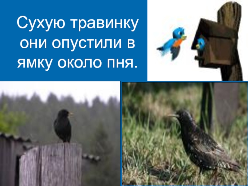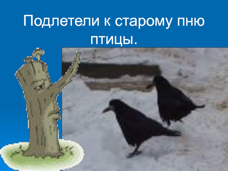 Слайд 27Подлетели к старому пню птицы.