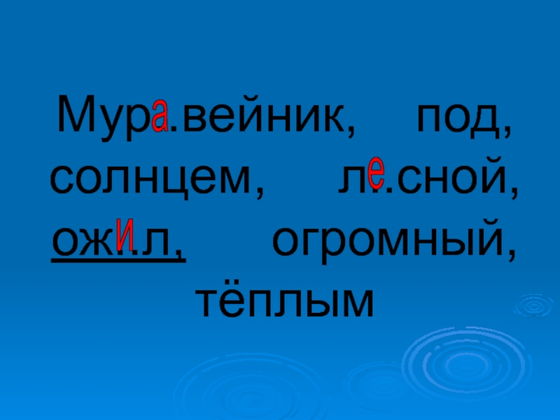 Слайд 22Мур..вейник, под, солнцем, л..сной, ож..л, огромный,