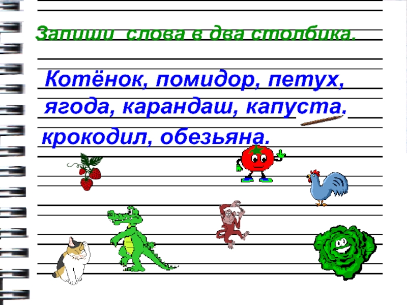 Запиши слова в два столбика.