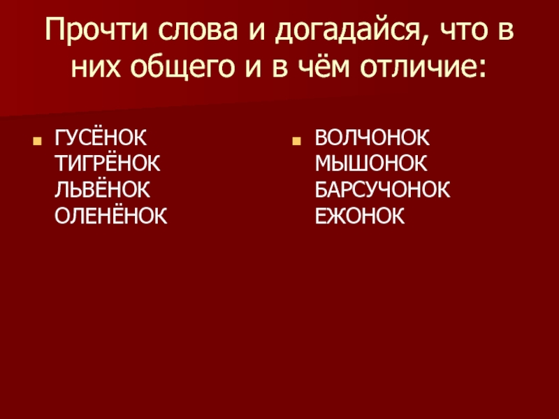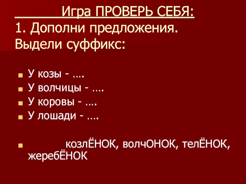 козлЁНОК, волчОНОК, телЁНОК, жеребЁНОК