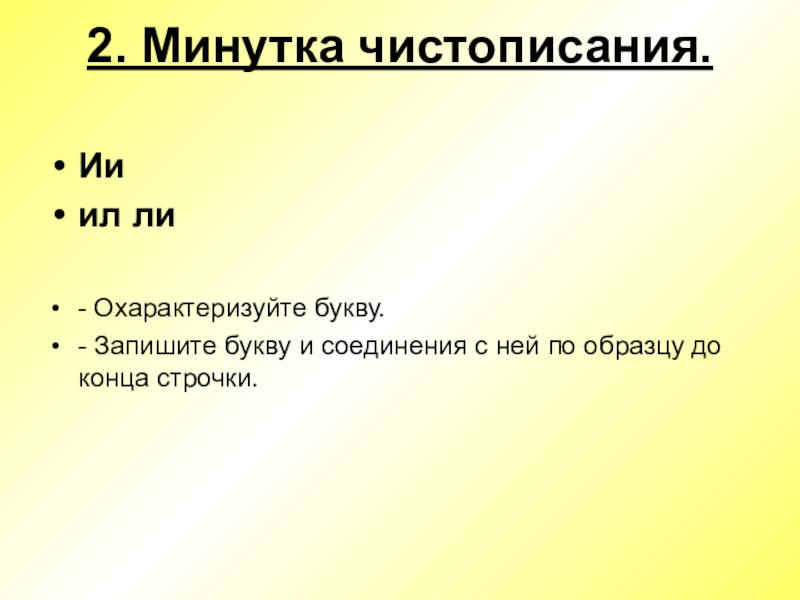 2. Минутка чистописания. Ииил ли- Охарактеризуйте букву.- Запишите букву и соединения с ней по образцу до конца