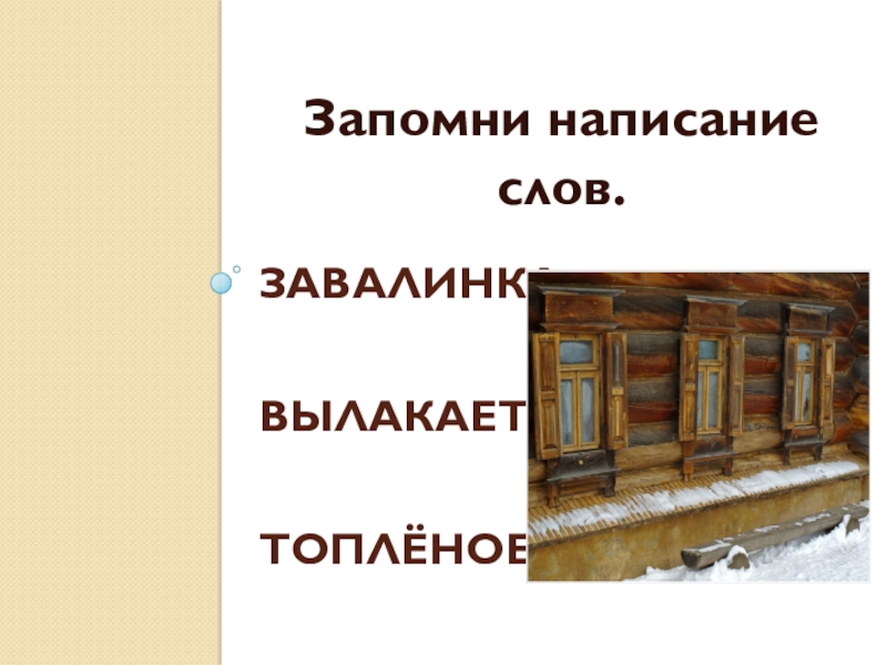 Завалинка  Вылакает  топлёное  остужать Запомни написание слов.