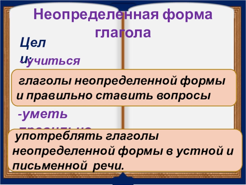 употреблять глаголы неопределенной формы в устной и письменной речи.