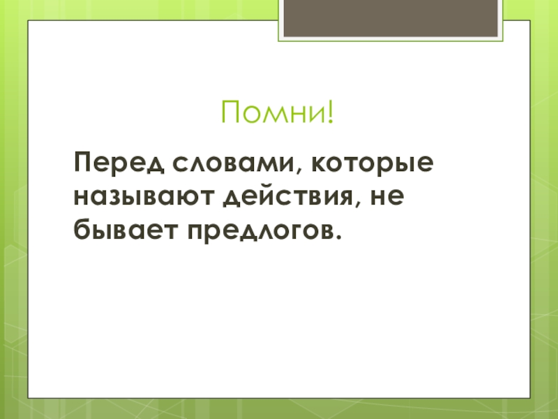 Помни!Перед словами, которые называют действия, не бывает предлогов.