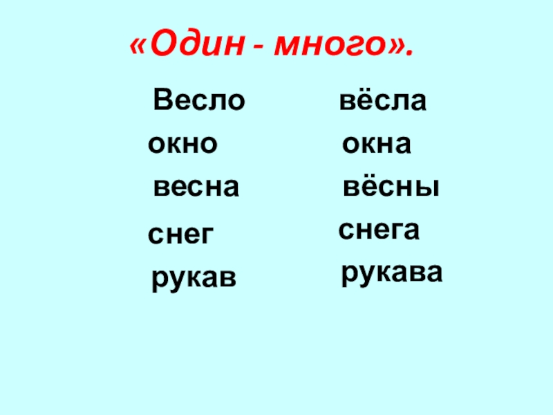 Для обозначения двух или более предметов имя существительное употребляется во множественном числе.