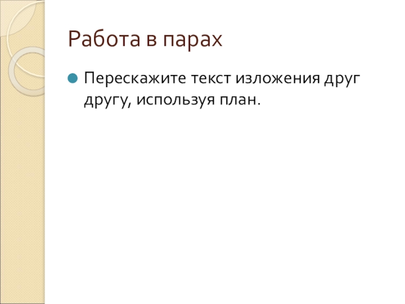Работа в парахПерескажите текст изложения друг другу, используя план.
