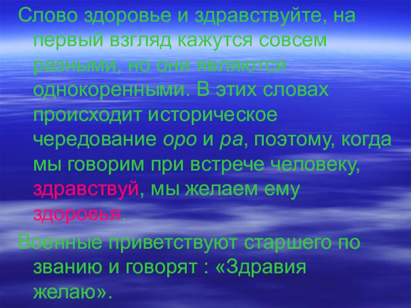 Слово здоровье и здравствуйте, на первый взгляд кажутся совсем разными, но