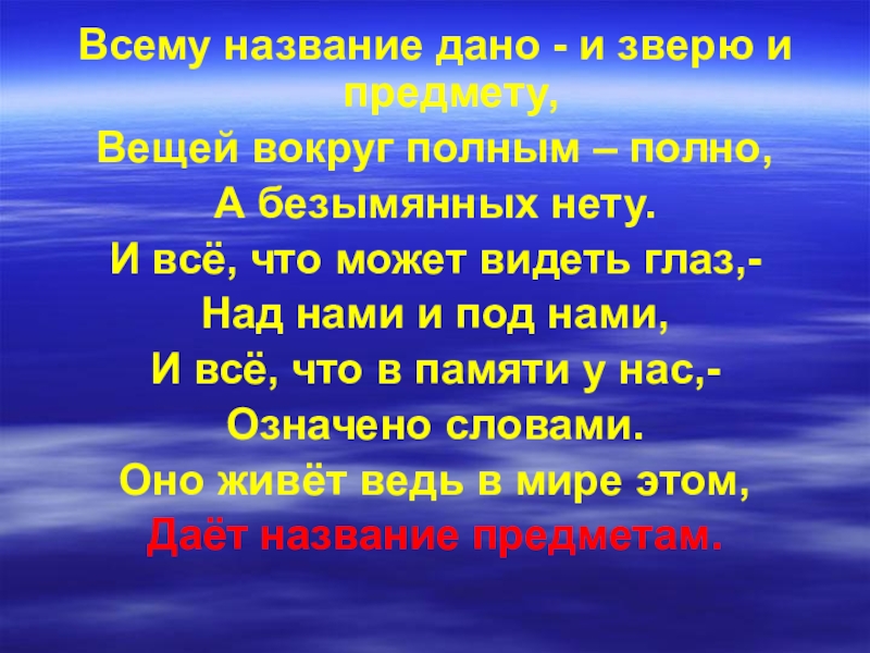 Всему название дано - и зверю и предмету,