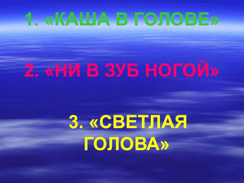 1. «КАША В ГОЛОВЕ»
