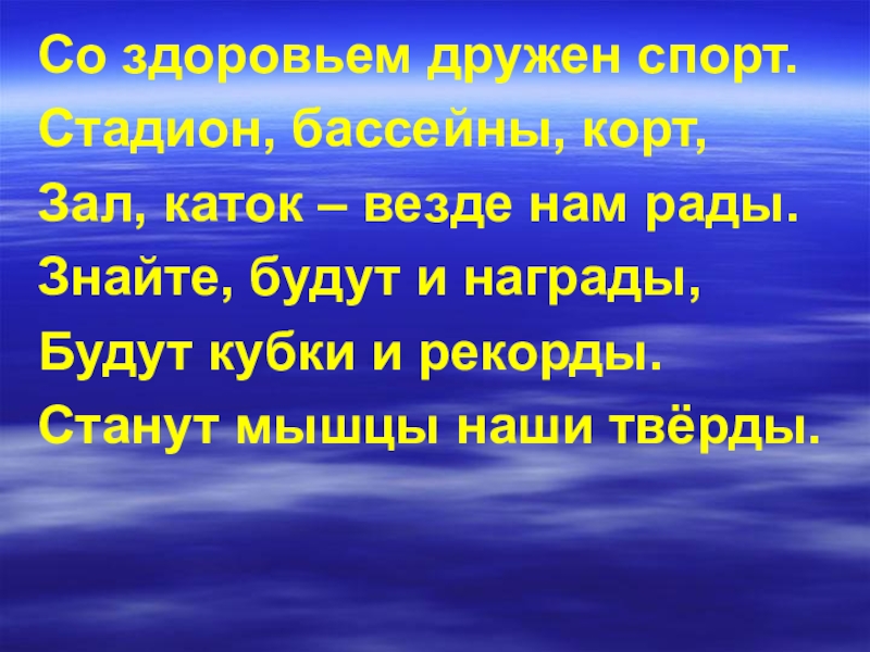 Со здоровьем дружен спорт.