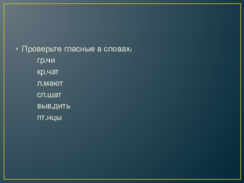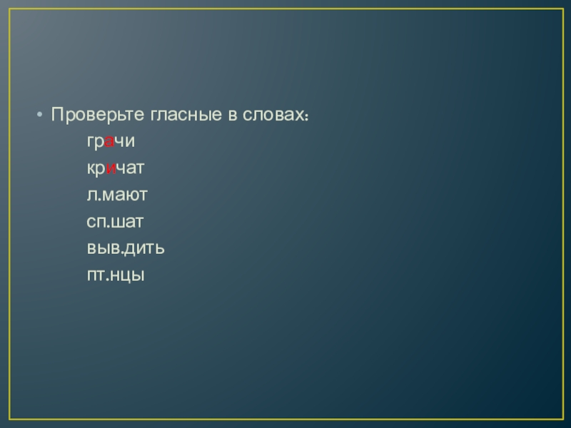 Проверьте гласные в словах:     гр.чи     кр.чат