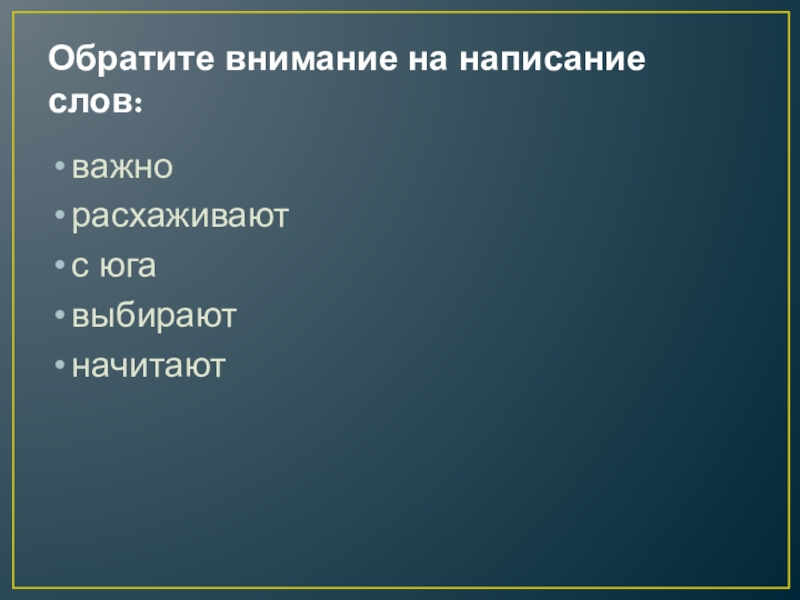 Обратите внимание на написание слов:важнорасхаживают с югавыбираютначитают