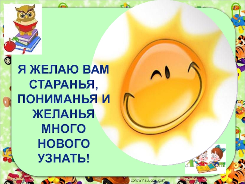 corowina.ucoz.comЯ желаю вам старанья,Пониманья и желаньяМного нового узнать!