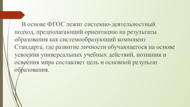 как системообразующий компонент Стандарта, где развитие личности обучающегося на основе усвоения универсальных учебных действий, познания и освоения мира составляет цель и основной результат образования.
