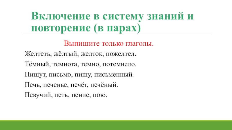 Слайд 10Включение в систему знаний и повторение (в парах)