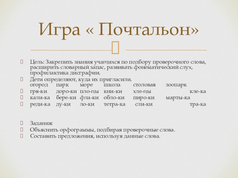Игра « Почтальон»