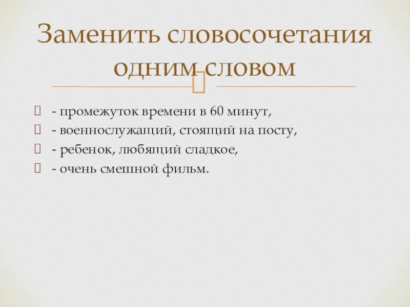 Заменить словосочетания одним словом