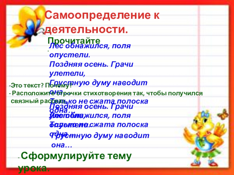 Устно расположите строчки стихотворения так,