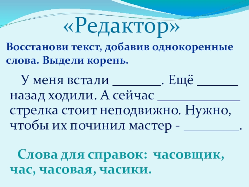 Тема урока: Однокоренные слова