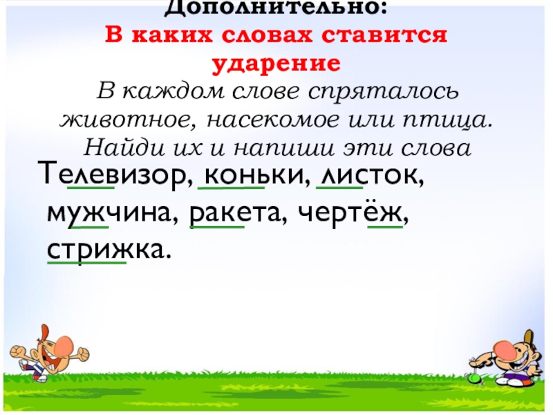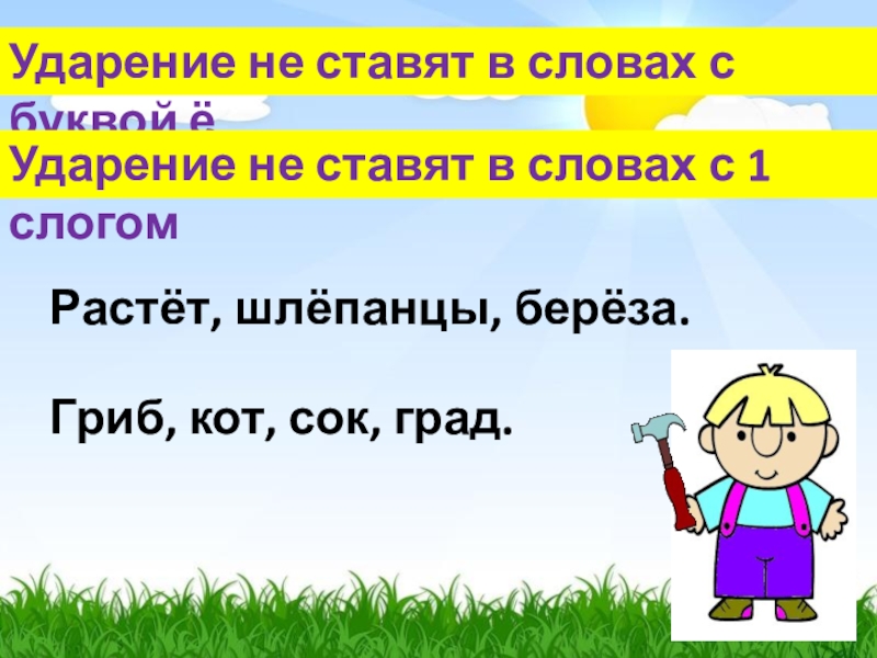 Ударение не ставят в словах с 1 слогом