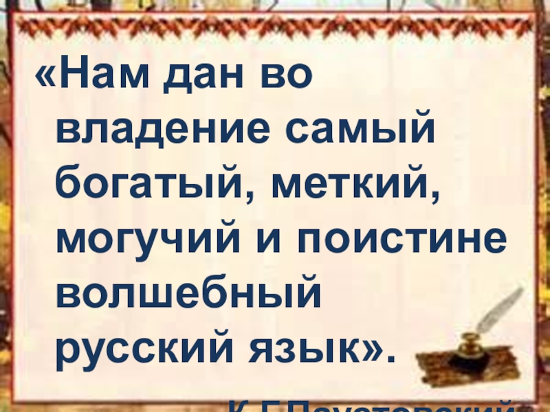 «Нам дан во владение самый богатый, меткий, могучий и поистине волшебный русский язык». К.Г.Паустовский