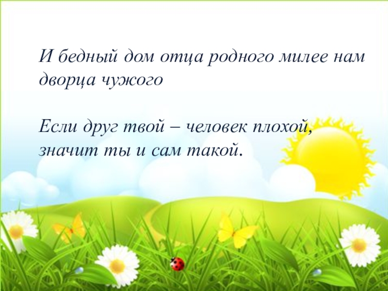 И бедный дом отца родного милее нам дворца чужогоЕсли друг твой – человек плохой, значит ты и
