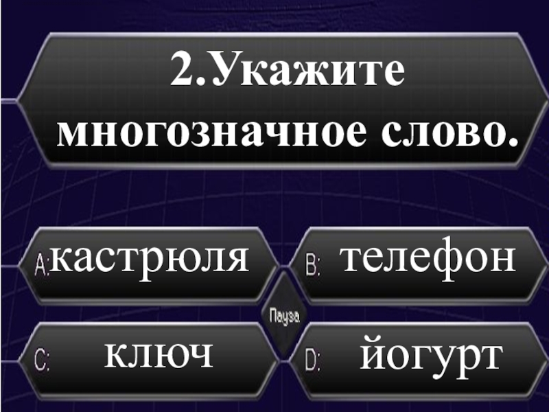 2.Укажите многозначное слово.кастрюлятелефон йогуртключ