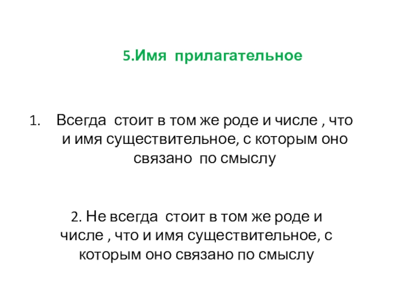 5. Всегда стоит в том же роде и числе , что и имя существительное, с которым оно связано по смыслу.